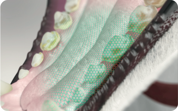 The plaque-fighting compound delmopinol coats the teeth and creates a protective barrier to help prevent bacterial attachment.
